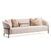 Graceful, understated, and impossibly refined—the Lisbon Sofa in Oyster captures the essence of serene luxury. Cloaked in richly textured bouclé in a soft oyster hue, this piece whispers elegance with every curve. Its sculpted silhouette is accentuated by delicate contrast welting, tracing the form like a fine couture seam. A matte bronze metal frame offers a warm, sophisticated counterpoint, grounding the design in architectural poise. Finished with five meticulously curated accent pillows in champagne tones and silky textures, this sofa is a sanctuary of style—effortless, elevated, and eternally chic.