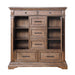 - Rich Walnut Finish: The heirloom finish is achieved through a multi-step process that includes mild distressing, wire brushing, and charcoal glazing that enhances the natural beauty of the wood.
