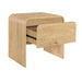 Introducing the Mara One Drawer End Table, a testament to eco-friendly craftsmanship and modern design. Crafted from durable manufactured wood and adorned with environmentally friendly laminate, this end table offers both style and sustainability. Its ample surface area provides space for lamps and accessories, while the discreet storage drawer keeps remotes and reading materials neatly out of sight. The minimalist design, accentuated by curved drawer fronts and waterfall-style tops and sides, adds a touch of contemporary elegance to any room. Finished in a natural hue, it effortlessly complements a variety of décors, making it a versatile choice for your home. Experience functionality and sophistication with the Mara One Drawer End Table.