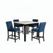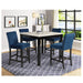 5 Piece Counter Height Dining Set With Table, Tufted Nail Head Chairs - Black / Blue / White 42.01"W x 42.01"D x 35.98"H - 145.0 lb