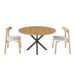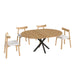 Finish: Warm grain texture on tabletop complements the raw wood chair aesthetic