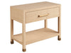 The Leah Nightstand, with its single drawer and full raffia-wrapped body, makes a textured statement in any bedroom. Bold bar hardware and leg accents add a touch of sophistication, enhancing the piece's rich texture and visual depth.