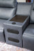 This console with audio system is made with a combination of 100% top grain leather and faux leather upholstery. Pairs with other items in the series to make a modular sectional.