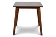 The Morocco Dining Table is a picture of Mid-Century Modern design with its tapered legs, slim profile top, and classic walnut brown color. Designed for smaller spaces, this table comfortably seats 4 people and works perfectly as a kitchen table, dining table, craft table, or anywhere you need an attractive workspace. Easy to assemble, this beautiful wood kitchen and dining room table will be a gathering spot in your home.