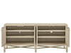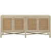 The Dockside Credenza features door panels showcasing a woven cane weave for rich texture and organic warmth. Its X-base stretcher and ample interior storage create a statement piece that perfectly balances natural elements with refined coastal style.