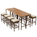 10 Piece Outdoor Acacia Wood Bar Height Table And 8 Stools With Cushions, Garden Wicker Dining Table, Foldable Tabletop, High Dining Bistro Set, All-Weather Patio Furniture - Brown