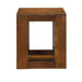 The Pisanio end table with swivel is an instant transformation in your sitting area to get that rustic inspired look. The square espresso finish table features a bottom shelf and side magazine holders and Wooden Base with Straight Panels.