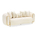 The Sassani Loveseat offers an intimate yet elegant seating experience. Upholstered in plush jacquard chenille and adorned with soft woven jacquard pillows, it brings a touch of refinement and warmth to any space. Gold accents and slender legs provide a sleek contrast, making this loveseat both a stylish and inviting addition to your living area.