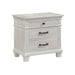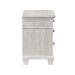 The Silver Sands Nightstand is a marvel of durable, quality construction, crafted from solid pine, manufactured woods, and Oak wood veneers, ensuring strength and stability. This versatile piece embodies transitional style, blending clean, simple lines with a rustic wood finish for a calm, inviting atmosphere. The misty gray finish, applied through a meticulous multi-step process, showcases the wood's natural grain and mineral patterns with a light, weathered look. Elegant design elements, such as the raised base, full return and dentil moldings, and contrasting hardware, lend a sophisticated appeal. Heirloom-quality drawers with durable dovetail joinery and three-stage steel ball glides provide smooth, full-extension operation and support for heavy loads. With three spacious drawers, including a velvet-lined top drawer for delicate items, this nightstand offers ample storage and functionality. A perfect addition to any bedroom, combining style, durability, and practicality.
