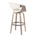 - Quality Materials: Upholstered in stylish, the Symphony barstool features bent wood legs complemented by a round metal footrest. This combination of materials ensures durability and a chic look.