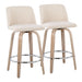 Toriano - Contemporary Fixed Height Counter Stool With Swivel And Round Footrest (Set of 2) - Whitewashed / Cream 19.02"W x 17.52"D x 35.51"H - 14.0 lb