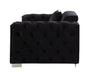 Center your living room around utmost sophistication and exquisite style with this Trislar collection. The collection offers your interior space eye-catching appeal with its button-tufting details and mirrored trim accent. In a buttery soft black velvet upholstery to add richness and perfect modern glam addition for any room. With sleek chrome legs, this piece not only adds refined elegance, but also provides ultimate tranquility.