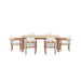 The Wesley Wood Patio Dining Set brings together comfort, durability, and style to create a warm, inviting space for outdoor gatherings. This set includes an extendable dining table and cushioned chairs, all crafted from FSC-certified Acacia solid wood, designed to last through every season. The rich wood grain is highlighted by a clear, smooth finish, adding a touch of natural beauty while standing up to the elements. The table’s classic slatted top not only adds character but also ensures quick water drainage, so it''s ready for any weather. For added comfort, each chair features plush, high-density foam cushions wrapped in Sundura™ fabric that resists fading and moisture, keeping them fresh and vibrant. With the table’s built-in leaf, you can effortlessly extend it from 78" to 96.5", creating plenty of room to comfortably seat up to eight people—perfect for relaxed family dinners or festive outdoor celebrations. The Wesley''s clean lines and gently rounded edges create a welcoming, laid-back vibe that makes every gathering feel like a special occasion.