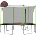 14Ft Trampoline With Basketball Hoop Inflator And Ladder (Inner Safety Enclosure) - Green