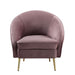The Abey living room collection is not only visually striking, but it also offers plenty of comfort. The curved silhouette creates a glam appearance. Upholstered in a luxurious pink velvet fabric to add dimension to the pieces. The gold metal tapered legs add another pop color and emphasize the glamorous design. This set provides enough seating for all your guests.