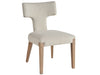 The Raen Side Chair is a captivating blend of modern design and classic comfort. Its fully upholstered body, paired with slender wooden legs, creates a striking silhouette. The distinctive T-shaped back adds a touch of sophistication, making this chair a timeless piece for any dining room.