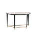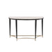 KD, Half-Moon Sofa Table • NO Storage • Wooden Top, Metal Tapered Leg •• CONSTRUCTION] Wooden Top: Veneer (Paper)+ PB • Metal Apron Trim • Metal Sled Base: Black Finish, Metal Tube (Arched 4-Crossbars Supports: Gold Finish)