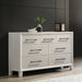 The Ballard 7-Drawer Dresser in Walnut offers a perfect combination of timeless elegance and durable craftsmanship. Constructed with solid Rubberwood, premium engineered woods, and genuine Okume veneers, this dresser is built to last while highlighting the rich character of the natural wood grain with its carefully applied multi-step walnut finish. The sophisticated transitional design features thick picture frame moldings and sleek, elongated square pulls, all supported by tapered legs that add a refined touch. Each of the seven drawers is crafted with four-corner English dovetail joinery, providing durability and smooth operation on center-mounted slides. The drawers also feature finished interiors, ensuring snag-free storage for your clothing and essentials. This dresser not only enhances the aesthetic of your bedroom but also offers ample and reliable storage, making it a practical and stylish addition to your home.