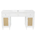 Stylish Aesthetic with High-End Finishes: Combines sleek silver knobs, natural pine legs, and rattan doors for a balanced, contemporary look.