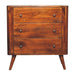Solid wood Bera Chest 3 Drawers - The Bera Chest is ideal for adding a contemporary style to any bedroom. It is perfect for maximizing space while staying on trend with 3 spacious drawers. It is constructed from 100% solid mango wood in a chestnut finish and nordic style legs, with shiny brass knobs on the drawers.