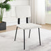 - Slim U-shaped legs enhance minimalism alongside rectangular seats and backs featuring rounded corners with gentle curvature
