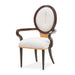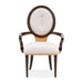 With its graceful silhouette and thoughtfully crafted details, the Camellia Field Dining Arm Chair is a statement of refined comfort. The oval back, adorned with camellia marquetry, pairs beautifully with the warm pecan finish and antique gold accents. Upholstered in soft chenille, it combines luxurious materials with a supportive design, offering an inviting and sophisticated dining experience.