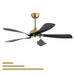 Ceiling Fan With Remote Control, Adjustable Dimmable Lighting & Silent DC Motor - Golden / Matte Black
