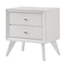 Minimalist and modern, the Cerys nightstand offers sleek clean lines for a contemporary take. This nightstand features two spacious drawers to keep bedtime essentials close by. Sitting on stylish angled squared wooden tapered legs that provide a modern visual appeal. The white finish makes for the perfect blank canvas for any room.