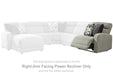 This right-arm facing power recliner is made with polyester upholstery. Pairs with other items in the series to make a sectional.