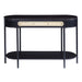 The Colson sofa table adds a nature-inspired accent to any home and features excellent craftsmanship and attention to detail. Its curved silhouette and mixed materials give this piece a cozy modern look and breezy aesthetic. The rattan insert mixed with the black finish is stylish. The Colson sofa table is a creative play on texture, tone, and style.