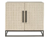 The Hall Chest combines architectural detail with practical storage. Featuring the collection's signature latticework design and a warm finish, its two doors open to reveal ample space for organizing essentials. The sleek metal base adds a contemporary touch, making this chest a stylish and functional addition to any entryway or hallway.