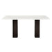 - Contemporary Style: This dining table's sleek white faux marble tabletop with subtle gray veining provides a modern and luxurious aesthetic. The dark pedestal legs offer a bold contrast and add to the table's contemporary appeal.