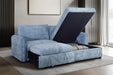 The Finn Storage Chaise Sectional with Pop-Up Sleeper Loveseat in blue blends modern design with multifunctional convenience. The loveseat transforms into a comfortable sleeper for guests, while the chaise features hidden storage for blankets and essentials. Upholstered in 100% polyester fabric, it offers durability, stain resistance, and easy care. Full foam cushions provide plush comfort, making Finn a stylish and practical solution for seating, lounging, and sleeping in today’s homes.