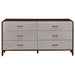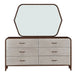 The Houston Dresser balances contemporary sophistication with a relaxed aesthetic. Its walnut-finished wood frame is complemented by striking drawer fronts, each adorned with a starburst pattern that adds depth and texture. Sleek, tapered handles combine wood and metal for a refined contrast, while rounded corners soften the dresser’s modern silhouette. Six velvet-lined drawers with soft-close glides provide effortless storage, and a hidden lift-up compartment in the bottom right drawer offers a discreet space for valuables.