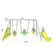 Introducing the Saucer Swingset with Mini Slide: a thrilling outdoor playset designed to bring boundless joy to children aged three and above. This swingset, featuring an elegant combination, is more than just a swing – it's a complete adventure package right in your own backyard. With its generous dimensions of 70.87 inches in height, 53.55 inches in width, and 152.49 inches in length, this swingset offers ample space for children to swing, slide, and engage in imaginative play. Its detachable design ensures effortless assembly and disassembly, making it convenient to store or relocate whenever needed. The Saucer Swingset with Mini Slide comes equipped with a variety of exciting features. The swing seat provides a thrilling swinging experience, while the sturdy canvas saucer swing adds an element of excitement and relaxation. The face-to-face swing promotes interactive play, allowing children to enjoy shared laughter and fun.