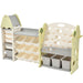 - Huge and Reliable - This high-capacity nursery organizer set has 13 medium bins, 4 large bins(removable) and 4 line bookshelves, plus a wide storage shelf on the top and a raised hanging rack on the side, providing a considerable amount of storage space.