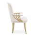 A study in sculptural elegance, the La Terrazza Dining Arm Chair brings refined comfort and elevated artistry to the dining room. Wrapped in a chic woven fabric with a soft metallic shimmer, the chair offers a luminous, textured surface that’s both inviting and sophisticated. Gold welt trim outlines its silhouette with a tailored finish, while the gently flared arms are framed by striking openwork panels in a radiant gold tone—an architectural detail that adds movement and dimension. The look is completed with tapered gold legs, giving the chair a graceful stance from every angle.