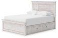 Makidern - Queen Panel Storage Bed With 2 Under Bed Storage Units - Whitewash 67.52"W x 85.51"D x 54.76"H - 295.99 lb
