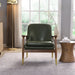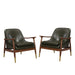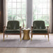 Mid Century Accent Chair Set With Cushioned Seat, Solid Wood Frame, Brass Tipped Legs - Green