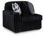 This left-arm facing corner chair is made with polyester upholstery. Pairs with other items in the series to make a sectional.