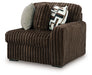This right-arm facing corner chair is made with polyester upholstery. Pairs with other items in the series to make a sectional.