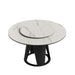 Modern Sintered Stone Dining Table With Round Turntable And Metal Pedestal - White