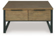 Give your space a sleek, urban edge with this table. A light wood-tone finish and a contrasting frame create a modern mixed-material look that pairs effortlessly with today’s sofas and sectionals. The spring-lift top glides up to create a convenient workspace or dining surface, while dual smooth-gliding drawers keep remotes, tech and clutter neatly out of sight. This table is polished, put together and needs a good home.