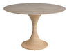 The Oasis Dining Table features a 44-inch round stone top in Travertine Beige beautifully supported by an hourglass-shaped base wrapped in natural abaca. This 30-inch height dining table creates a stunning focal point that brings organic texture and coastal sophistication to your home.