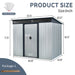 6Ft X 5Ft Outdoor Metal Storage Shed With Lockable Sliding Doors And Transparent Plate For Garden, Lawn - Black / White