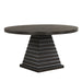 The Plateau 54" Round Dining Table offers timeless style and everyday durability. Crafted from solid Rubberwood and Oak veneers, it features a rich espresso finish with heirloom-style distressing. The bold pedestal base and geometric lines blend rustic charm with modern appeal. Perfect for both casual meals and special occasions, the spacious round top comfortably seats four—creating a warm, inviting setting for gathering and dining.