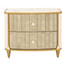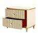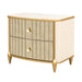 Grace your bedroom with the luminous beauty of the Scotts Square Nightstand. Wrapped in a soft champagne finish with gleaming gold trim, this design captures the perfect balance of sophistication and glamour. The antique mirrored drawer fronts shimmer with beveled elegance, while the onyx-look top offers a radiant surface for your most cherished accents. Soft-close, velvet-lined drawers provide a sumptuous storage experience, and an integrated LED light within the top drawer brings an added touch of brilliance.