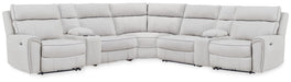 Social Pointe - 6-Piece Power Reclining Sectional With Storage Console - Pearl / Ash 135.98"W x 122.99"D x 42.99"H - 652.0 lb