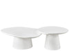 The Tranquility Nesting Cocktail Table captures a dreamy essence with two uniquely-shaped tables of varying height finished in a subtly textured white hue.