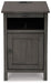 Add big character to a small space with this chairside end table. With its compact size and strong silhouette, it can go anywhere and blend easily into the decor. Less is so much more with the Shaker-inspired design and whitewashed wood grain finish. Loaded with form and function, this end table displays accent pieces and stores essentials securely while keeping devices powered up.